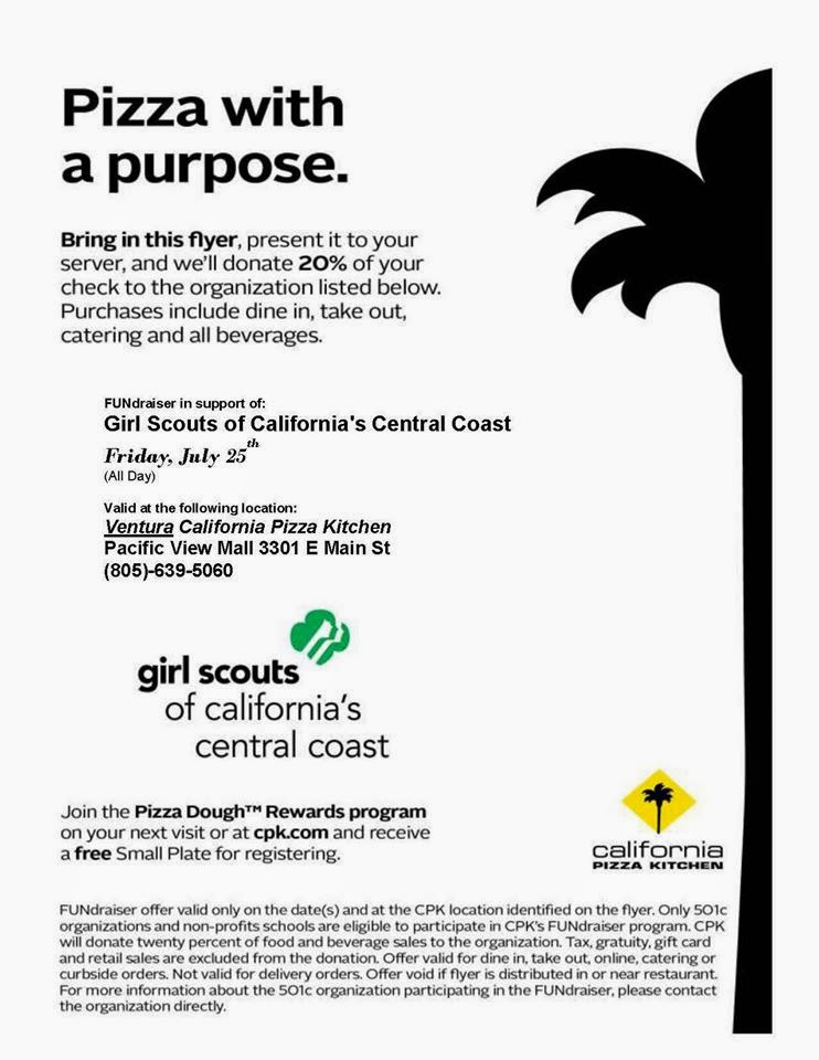 Pizza with a Purpose – Join us in Support for Girl Scouts at CPK Fundraiser. July 24, 2014October 26, 2018 Tomorrow all day – at Ventura, CA CPK, 20% of proceeds of your purchase will be donated to Girl Scouts to serve girls in our community. Share this: Click to share on X (Opens in new window) X Click to share on Facebook (Opens in new window) Facebook Like Loading... Related