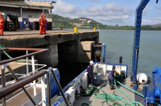 Frigate birds circled lazily overhead, and giant container ships sent the Nautilus rocking as they passed by on their way toward the canal.