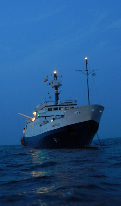 The boat ride back was much smoother than the one going out, and we all stayed dry. The Nautilusappeared, lights shining like a beacon as darkness started to fall. Thankfully, the kitchen had held dinner for us latecomers.
