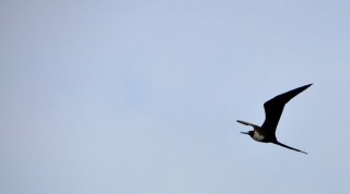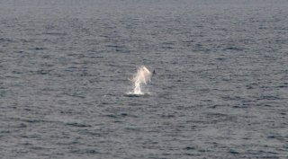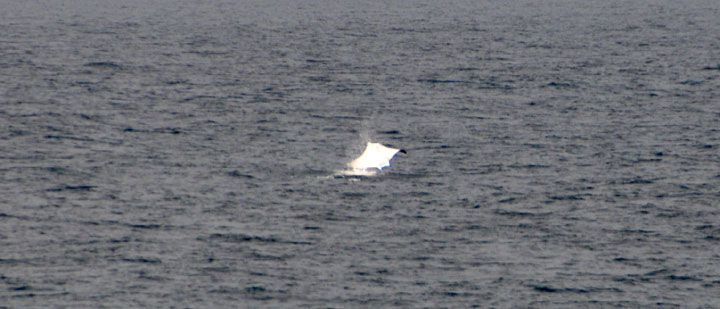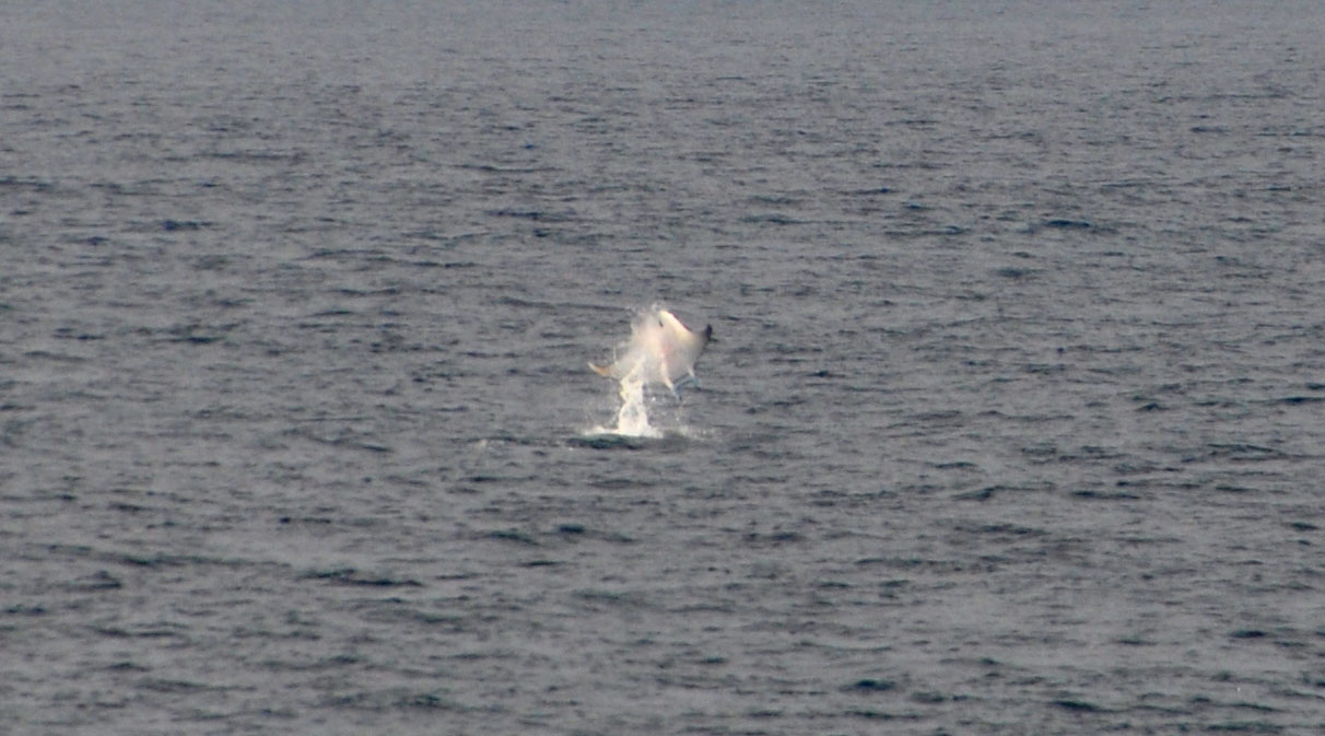 When we moved from the Puerto Ayora area to Baltra, I stayed outside despite the threat of bees. Scanning the horizon, I saw a huge splash. Watching carefully, I blazed off a handful of shots as it, whatever it was, leaped again. It was far enough away that I could not see what it was, just the huge splash. I thought maybe it was a small whale or large dolphin. It was only later, upon review of the photographs, that I could see it was a huge manta ray, leaping out of the water.