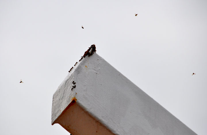 But the really big news of the day has been the BEES. A swarm of them infested the mast a couple of days ago, and we were warned not to go on the monkey deck, because they were avidly stinging crew members. Today, a group of them started to swarm the small boat crane, next to the control van. A little later, they started to enter the control van through the air conditioning ducts. After the fifth person today got stung, the daily cleaning efforts of the ship (necessary partly because of our nighttime avian visitors and the “presents” they like to leave behind) turned to include the bees. As of now, the bees are not a problem.