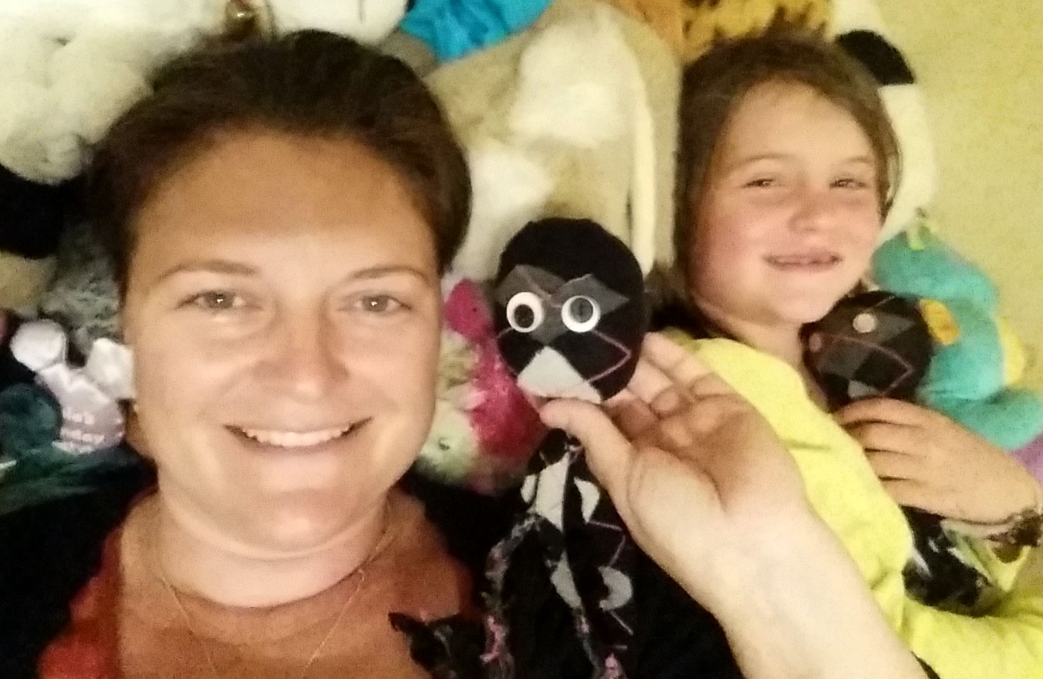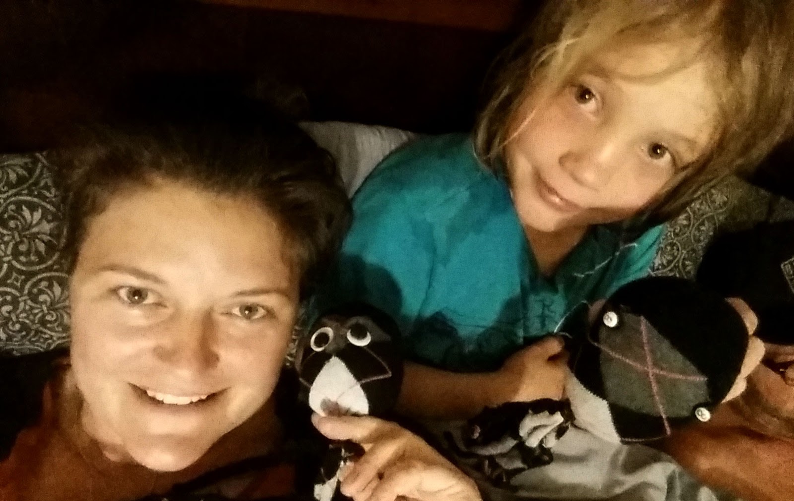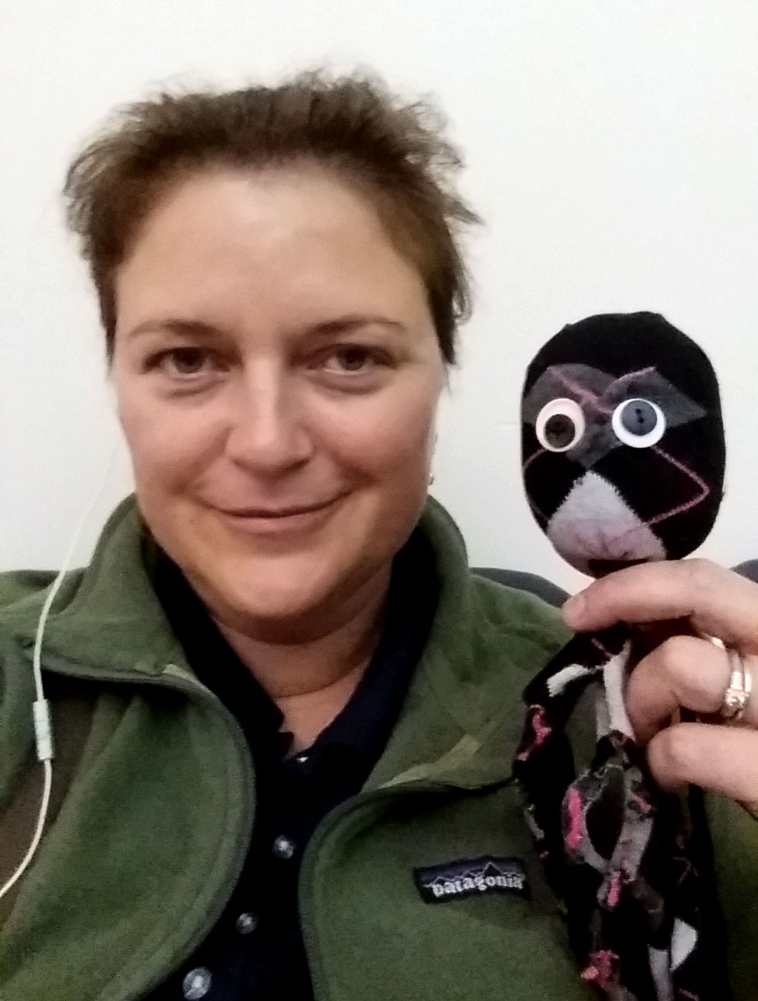 But one of my favorite moments so far was joining Melissa on a live interaction with her daughter’s kindergarten class. The kids asked if we had seen any sharks. I hid behind Melissa’s back at that question, because I am terrified of sharks (So fast! All those teeth!). The kids, who had met Aiden’s Socktopus, were delighted to see me. I even got my own headset to match Melissa’s. I liked getting in on the action.