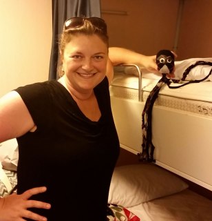 | With Melissa in her cabin. I am glad we snagged a bottom bunk! |