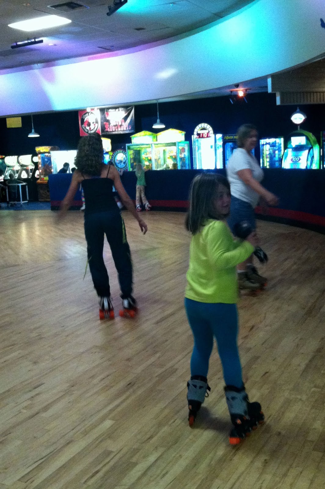 | Sis got to go roller skating. But Aiden had to carry her, because they did not have eight tiny skates for sis. |