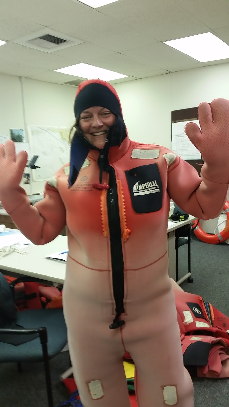 I was here at the request of the Ocean Exploration Trust, completing the pool portion of Personal Survival Techniques (PST) training, a component of the STCW (Standards of Training and Certification of Watchkeeping) training. Regulated by the International Maritime Organization (IMO), the STCW Basic Safety Training course is mandated by ALL flag States for all working seafarers, and is the international standard. OET needed some more people trained in the PST portion of this training for my leg of the expedition. Reading the course description, I got that familiar little tickle in my belly that told me, “Are you crazy? That sounds pretty intense.” So my response, naturally? “You got it! I’m in.”