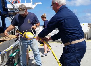 Hercules is able to collect samples and manipulate various scientific equipment using his Predator arm. It is quite a versatile piece of equipment, as it does both heavy lifting and performs delicate maneuvers to manipulate instruments and collect samples. It is controlled by a multijointed joystick in the control van. Some of the actions on the joystick used to give force feedback to the operator, meaning he or she could actually feel resistance when trying to lift or maneuver heavy objects. But a key component for that system broke, and OET opted not to fix it. It’s just as well, reports one of the ROV pilots, because it created power-hogging issues.