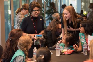 | Girl Scouts Interim CEO Sylvia Acevedo and actress Bella Shouse talk to Girl Scouts about STEM. |