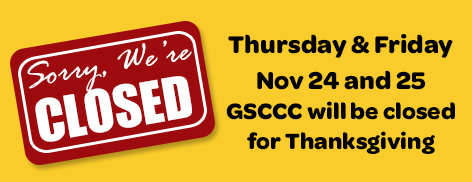 GSCCC offices and shops will be closed tomorrow, November 24 and Friday, November 25 in observance of the Thanksgiving holiday.