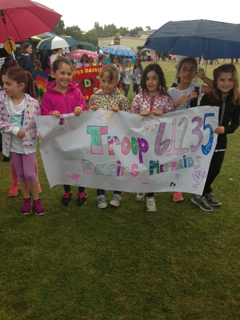 Both second and third grade Brownies . . . and some Daisy troops, braved the drizzly cold of a gray Saturday morning, May 6, to participate in the Annual Brownilympics in Thousand Oaks.