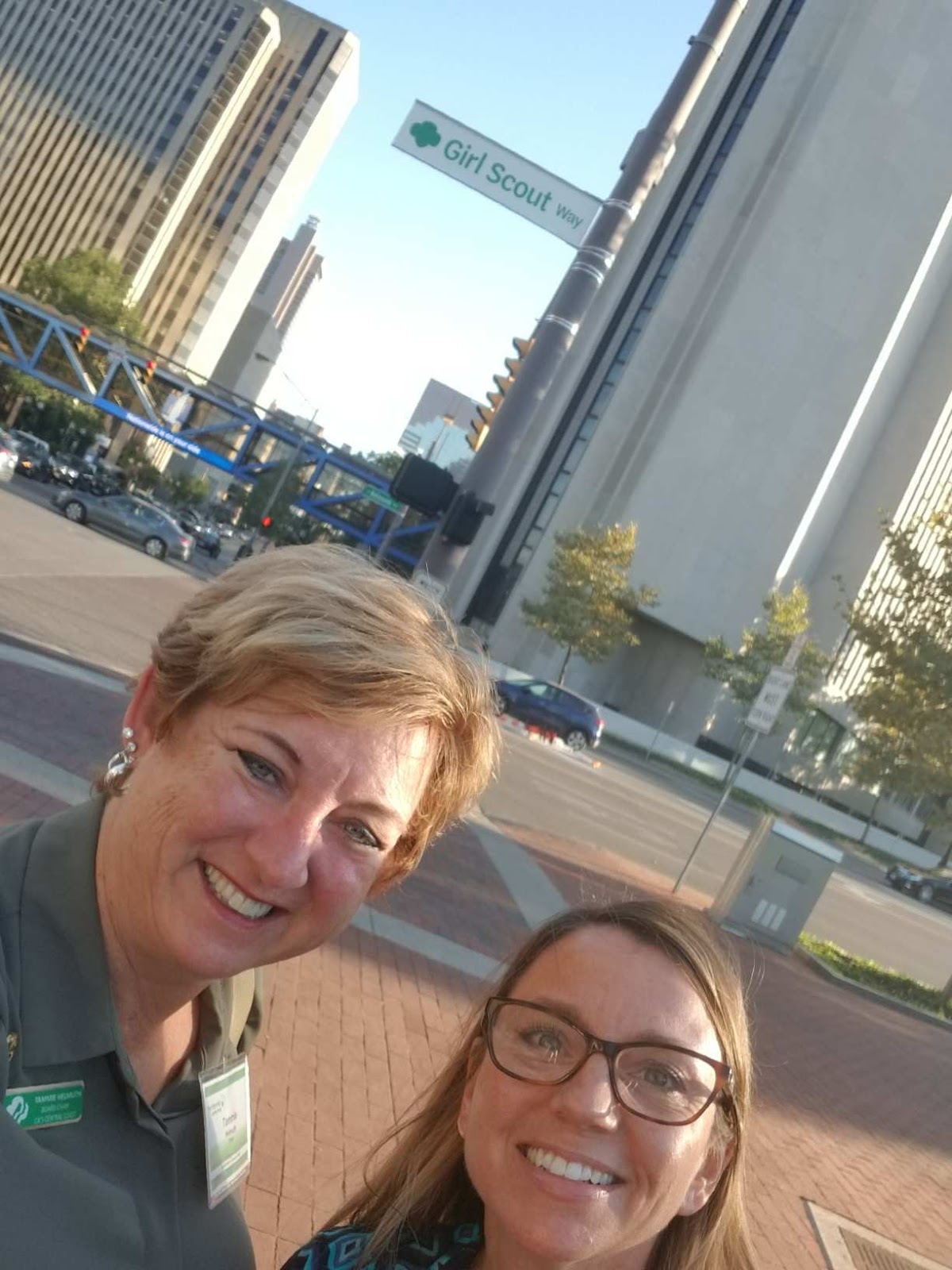 | Girl Scout Way Sign behind Board Chair Tammie Helmuth and GSCCC CEO Jody Skenderian |