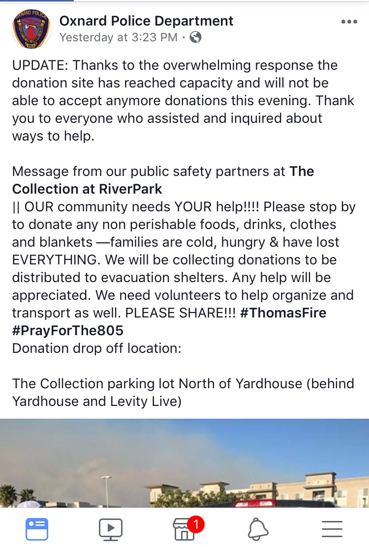 If you’d like to help you can collect for the shelter that has been set up at the Ventura County Fairgrounds, including: