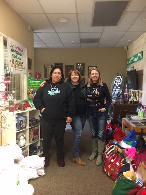 They delivered the Adopt a Girl Scout gifts, new toys, books and coats (for their One Warm Coat drive) to Girl Scouts. They also dropped off the used clothes at a Santa Rosa Distribution Center and delivered food and water to a Food Bank.