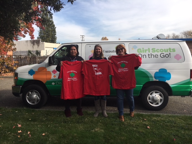 They delivered the Adopt a Girl Scout gifts, new toys, books and coats (for their One Warm Coat drive) to Girl Scouts. They also dropped off the used clothes at a Santa Rosa Distribution Center and delivered food and water to a Food Bank.