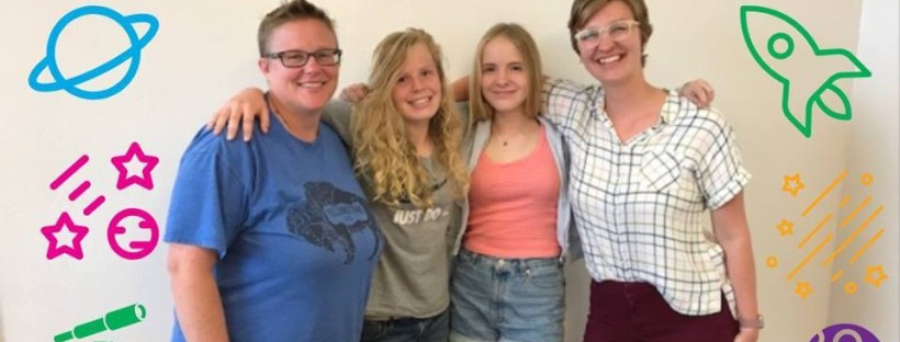 Team members include Amateur Astronomer, Krissie Cook, Girl Scouts Skyler Metcalf (grade 8) and Annika Wagner (grade 8), and Director of Program Caitlin Judd.