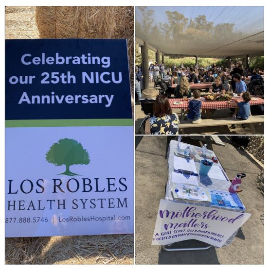 In November of last year, Megan created and manned a station at Los Robles Hospital’s Prematurity Day and celebration of the NICU’s 25th Anniversary with the help of a Junior Girl Scout Troop. Families learned the difference between “Baby Blues” and postpartum depression. “At the station, I welcomed families who had premature babies in the NICU, handed out inspirational note cards to attendees, and explained what mental health resources are available in our community,” Megan said. She also demonstrated her hand-lettering skills as a stress relief technique and sold customized pencil boxes and name tags to fundraise for supplies and supplement additional diaper sizes.