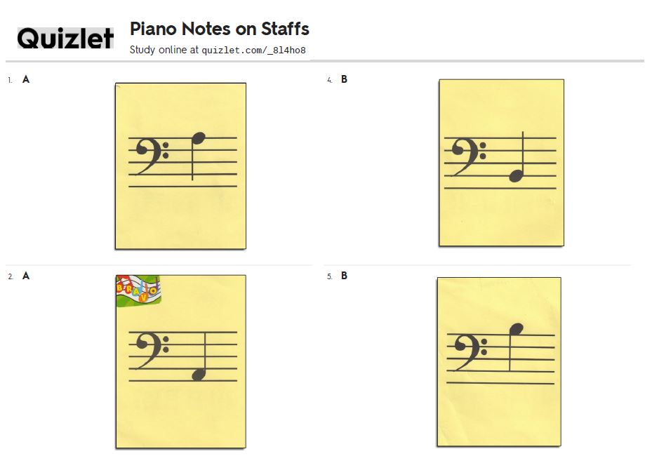 After setting up her tripod and streaming devices, Katie would prepare to lead three 45-minute virtual lessons over Zoom each day. Her students learned seating and hand placement, playing the black keys, and note recognition. Katie sent out the students’ homework at the end of their lessons to help them prepare for the next meeting and practice during the week. Because everyone learns at a different pace, she created personalized Quizlets, or digital flashcards, for her students to track their progress and learn the notes.