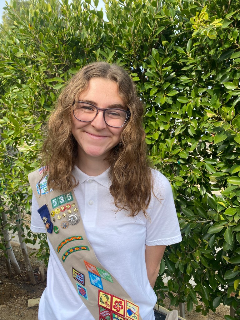 Our next Gold Award recipient is Erin Sullivan, with her project “Installing Cross Country Signage at Sapwi Bike Park.” The idea for her Gold Award stemmed from being an avid member of her high school cross country and track teams. Erin wanted to use her Gold Award to give back to the running community because it played a huge role in shaping who she is today. The Sapwi cross-country course is a valuable part of the high school running community. Every year, the course is used to bring together Thousand Oaks, Westlake, Newbury Park, and other local high school teams. Erin completed her Gold Award by installing mile markers along the Sapwi course. These markers make it easier for athletes to navigate and compete on the course. She emphasized sustainability throughout her project and made sure to design and budget the mile markers by utilizing repurposed materials. To meet time constraints, she organized a team of volunteers and mentors.