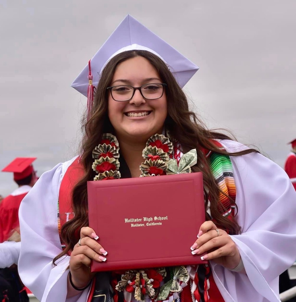 Our fifth highlighted Gold Award features Autumn Salinas with her project “Hollister Veterans of Foreign Wars Memorial Tile Graphing System.” Autumn’s inspiration stemmed from a deeply personal connection to the cause. Prompted by her Uncle George Nava, the past Commander of VFW Post 9242, and her Grandfather Louie Nava Sr., whose memorial tile graced the grounds of Hollister, CA, Autumn felt a profound sense of duty to create something meaningful for her community. With the support of the new VFW Commander, Maria Spandri, Autumn approached the City Council with her vision. Despite the project being on city-owned property, Autumn’s proposal received unanimous approval, with the Council not only granting permission but also generously funding her project. The heart of Autumn’s project lay in the creation of a graphing system, seamlessly connecting a kiosk to the memorial tiles laid on the ground to allow family and friends of the named veterans to easily find their loved ones’ tiles. Collaborating with Matt and Shannon Imbronone of Savage Designs, Autumn designed small plates inscribed with the names of San Benito County veterans. These plates, along with carefully arranged letters and numbers, formed a cohesive system both on the kiosk and the ground. From power washing the ground to meticulously placing letters and numbers with her father’s assistance, every step was a labor of love. Her mother and sister played crucial roles, from painting tile names to organizing the plates, ensuring every detail was perfect. As the project neared completion, Autumn’s efforts could be seen on Memorial Day when she witnessed people using the kiosk, honoring the veterans whose names adorned the tiles. It was a moment of profound fulfillment, knowing that her project would serve as a lasting tribute to those who sacrificed for their country.